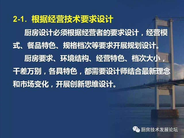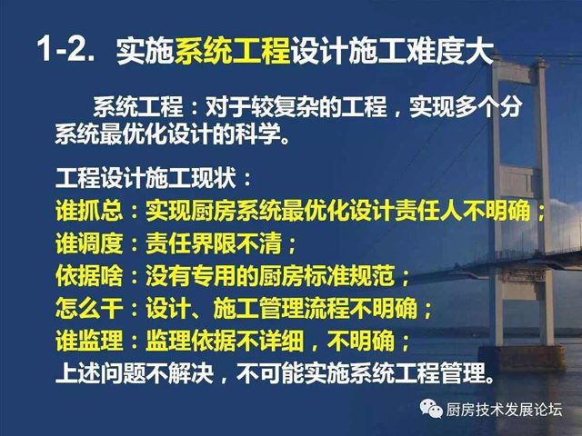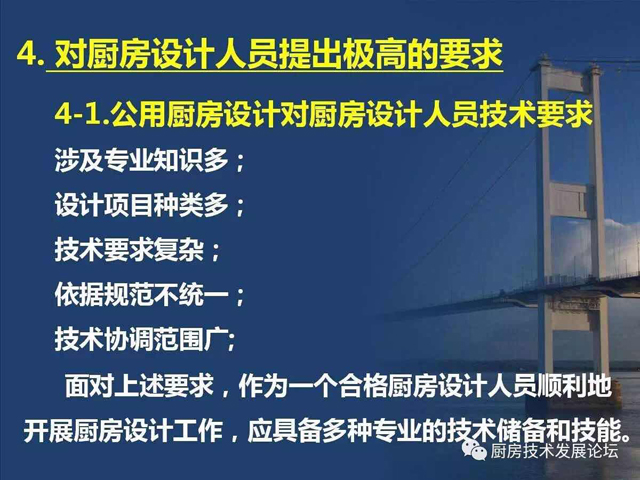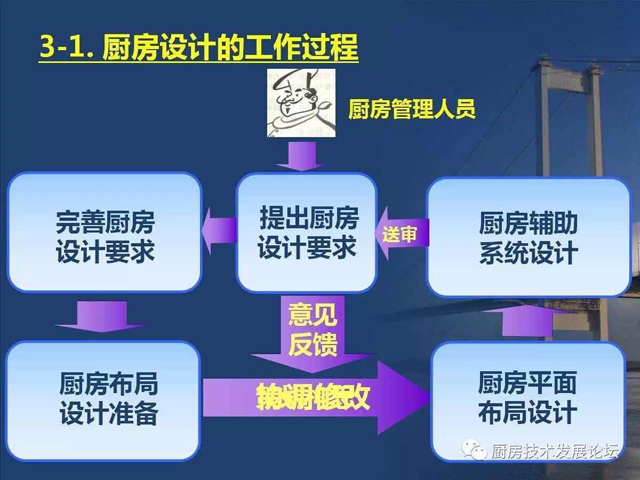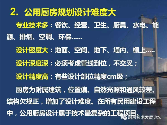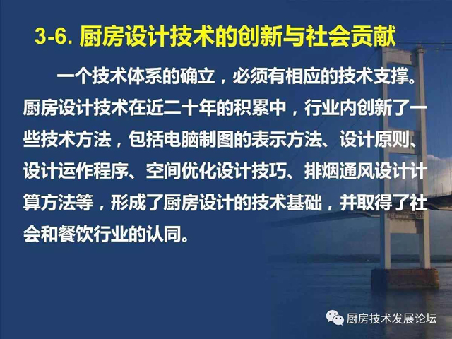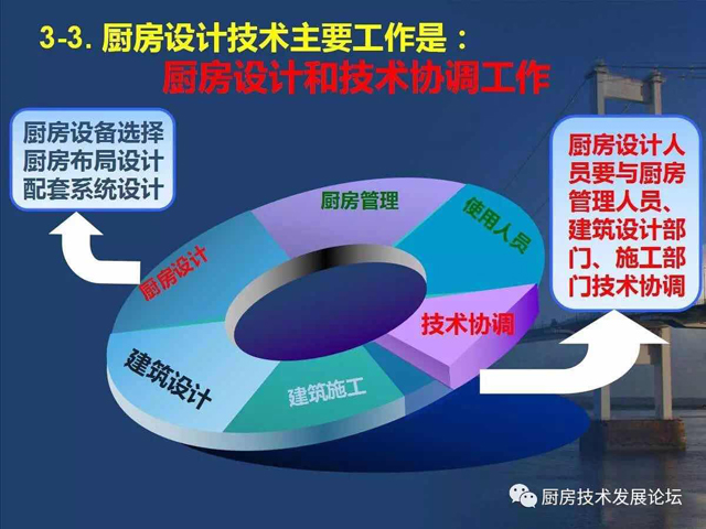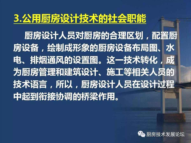 由于厨房设计没有专业的设计标准,也就缺少了与其他行业平等对接的平台,即使在对接中,无法规可言,自然也就缺乏可信度,处在劣势状态。所以,整个行业仍然处在边缘化的状态,阻碍了厨房设计技术发展,也影响了公用厨房的建设质量。其中原因之一,就是行业内外对厨房设计的所具有的职能认识不完全、不深刻,社会定位也就自然处于“名不正,言不顺”的状态,使厨房设计人员及整个行业都处在不公正待遇。要“言顺”,需要先“正名”,行业内的每个人都应该从正名开始,对外宣传,使相关人员认识到厨房设计技术的职能作用及设计师的水平能力。